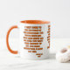 This two-tone mug showcases a design that features a Hit and Run font with orange letters black outline displaying the "Jonah 2:6" KJV bible scripture verse over a white background of this faith based theme. This verse is referencing the Book Of Jonah 2nd chapter showing the 6th verse in this bible scripture quote theme from the King James bible. The rim & handle are glazed in matching colours available in 11-ounce or 15-ounce sizes microwave and dishwasher safe ceramic construction.