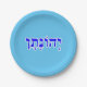 Personalized with the Biblical Hebrew name Jonathan with blue characters and a white outline, these sky blue plates are perfect for bar mitzvahs and Jewish naming ceremony parties.