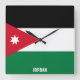 Jordan Flag Dazzling Patriotic Square Wall Clock in the colors and the elements of the Jordan national flag covering the front of the clock. National flag colors are complemented with the text "Jordan" on the bottom. Text is fully customizable using "Customize it!" feature. Feel free to change it, remove it or add your own. This charming design is the stunning gift and the great show piece on the wall. © CountriesOfTheWorld