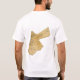 An editable title and slogan accompanies the white star in red triangle next to black, white and green bands of the Jordanian flag on the front of this t-shirt. The back displays a detailed map of Jordan.