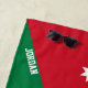 Jordan Flag Splendid Patriotic Beach Towel with the Jordan flag printed all over the towel. National flag colours are complemented with the text "Jordan" on the bottom. Text is fully customisable using "Customise it!" feature. Feel free to change it, remove it or add your own. This charming design is the stunning gift and the great partner for the sunny day on the beach. © CountriesOfTheWorld
