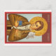 This postcard designed by Christopher C. Smith depicts Joseph Smith painted in the style of a mediaeval Catholic saint. Clutching the Bible and the Book of Mormon—Mormonism’s two foundational books of scripture—he tilts his head in contemplation. A dove sits on his shoulder, symbolising the Holy Spirit, and a halo surrounds his head. He wears the rustic brown leather jacket of an unassuming nineteenth-century American prophet.