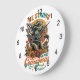 Purchased this online and it got delivered quickly. It was a present for my Dads 70th birthday. He loves clocks so decided to get him one with something written on it. Battery went in and it started working straight away. Dads had no issues with it. Printing was just how it came up online.