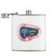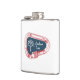 The flask itself is fine. It’s a cheap flask, obviously bought in bulk, however am prepared to overlook that. Given that it is a personalized item, I would have liked to have seen gift boxing instead of the generic packaging. Terrible printing, and/or quality. It’s a cheap, tacky vinyl. It is not cut straight and is also applied in a way that it is overhanging the bottom, causing the glue to catch on items and it will eventually roll and tear, damaging the wrap.