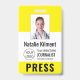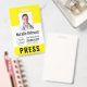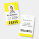 Journalist Press Pass Photo Name Logo ID Yellow Badge
