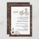 "Love the Journey" Customisable Invitation for Bridal Shower or any occasion. Wooden background with bicycle and floral decorations.
