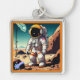 A whimsical cartoon astronaut bounces joyfully across the colourful surface of a distant planet, surrounded by quirky alien landscapes. The light-coloured background enhances the playful scene, inviting viewers to imagine the wonders of space exploration and the thrill of discovering new worlds.