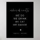 This order of events sign features a modern minimalist design with an edgy black and white colour pairing with the saying, "we do, we drink, we eat, we dance." Easily change the font and background colour to match your event. This is perfect for a wedding, couple's shower, bridal shower, engagement party or any other special event.