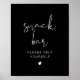 This snack bar sign features an edgy handwritten font and a modern minimalist design with an edgy black and white colour combination. Easily change font colours and background colour to match your event style. Pair with additional items from the JOVI Collection for a cohesive look.