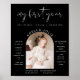 This first birthday milestone board features an edgy handwritten font and bold black and white colour combination with a cute arched photo in the middle. This year one highlight poster is perfect for your boy or girl birthday party. All colours are editable! Click the blue 'edit using design tool' button in the personalisation section to use the full editor.