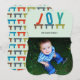 Vibrant colored letters, trees, holly and cancy canes in a cheerful message suitable for a non-religious holiday greeting. I especially liked it on the black background which made the design pop.