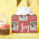 This Christmas gift wrapping paper offers two square photo frames for your favourite family photos. The background is solid red and is accented with the text "Joy" appearing in a popular handwritten style. Personalise this holiday gift wrap with your photos and name.
