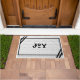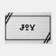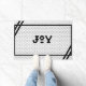 Repeat the sounding joy this season with this black and white hex tile design doormat! This white mat reads "Joy" in black with a black modern border.