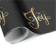 “Joy” Black Gold Script Elegant Holiday Wrapping Paper