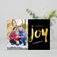 This modern holiday card features a brush script font in gold foil. Upload your own photo to personalise this design. Vertical images work best.