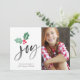 This Holiday photo card is simply stylish and makes a bold statement with its simplicity and sentiment. The design is minimalistic and artistic with joy inscribed in brush lettering, and features our exclusive hand-painted watercolor holly and watercolor brush strokes pattern on the back. Bring joy to loved ones this year with this simply stylish holiday photo card.