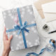 JOY Christmas Family Silver Grey White Snowflake Wrapping Paper