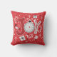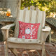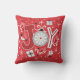 Joy Christmas Holidays Red Festive Winter Patio Outdoor Throw Pillows Cushions features the text "Joy" in modern festive typography in red and silver accented with Christmas decorations, ornaments, gifts, snowflakes, holly and flowers. Fabulous for Christmas home decor and as gifts for the holidays. Designed by © Evco Holidays www.zazzle.com/store/evcoholidays