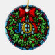 A cheerful round design featuring the word “JOY” surrounded by a festive wreath of holly leaves, red berries, and a bright red bow. The stained-glass style and vibrant colours bring warmth and holiday spirit—perfect for decorating your Christmas tree with classic charm.