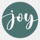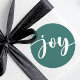 Joy cute script simple typography green Christmas Classic Round Sticker
