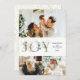 JOY Elegant 3 Photo Gold Greenery Christmas Holiday Card