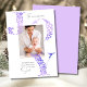 Joy Elegant Christmas Floral Typography Photo Holiday Card Christmas Card features your favourite photo with a modern lilac "Joy" floral typography overlay and personalised with your custom message and personalised with your family name. Perfect for family and friends for Christmas and the holidays. Designed by Evco Studio www.zazzle.com/store/evcostudio