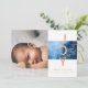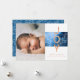 Simple and elegant photo card for the holidays, featuring "JOY" written in big modern font on beautiful blue watercolor backgrond with white foliage elements. Photo and the text can be changed with only few easy steps.