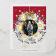 Send some love and holiday cheer to your family and friends with our magical and festive rose gold foil Christmas card. Beautiful watercolor sage green eucalyptus and festive winter greenery hanging wreath with a special family memory photo displayed in the middle of the Christmas wreath. The photo is framed in rose gold foil with festive red cranberry accents. White & rose gold snowflakes are placed within the Christmas wreath arrangement. Simple falling snowflakes cascade from above, creating a cosy and magical winter scenery. "Joy Elevated" is displayed in elegant foil calligraphy. The background features a two-tone card white shiplap wood texture. Customise with your family signature and year. Reverse side with white shiplap wood texture and a faux gold bow and ribbon corner accent. Wreath illustration hand-drawn original artwork by Moodthology Papery.