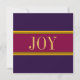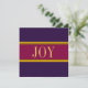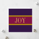 This chic holiday season design features festive golden yellow and brown pinstripes highlighting modern "JOY" text inside a wide burgundy red centre stripe adjoined by deep purple outer stripes.
