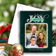 JOY Festive Green Modern Script Christmas Photo Holiday Postcard