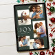 Joy five photo collage modern green Christmas Holiday Card