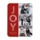 JOY Foliage Lettering Red Christmas Photo Collage Flat Magnet | Send Christmas greetings with this whimsical holiday photo magnet. It features JOY decorative typography. Personalise by adding your details.