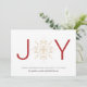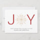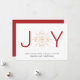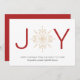 A simple holiday card featuring JOY with a gold snowflake. Personalise a greeting and your family names. The reverse side is coordinated in red.