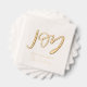 Beautiful hand-lettered JOY in an elegant gold foil makes these paper napkins a stunning addition to your holiday party this year. Customise with your own greetings line and name(s) also in gold foil! Original art and design by Annie Montgomery BeautiDesign.