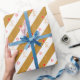 Joy Heart Pattern on Striped Golden & White Wrappi Wrapping Paper