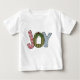 Christmas T-shirts, mugs, cards, stickers, tote bags, magnets, and other Christmas holiday clothing and gift items featuring bright holiday text that reads "JOY".