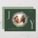 Send warm holiday wishes with this elegant Joy Christmas card featuring a crisp white background and festive green and red wreath foliage framing your family photo. The letters "J" and "Y" are written in sage green, adding a joyful touch to the design. The "O" houses the family photo within the wreath. The card is customisable with your family details and includes the perfect Christmas message inside, making it a thoughtful and personal way to celebrate the season.