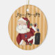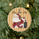 Santa Claus holiday ornament with Santa on a golden stripe background with text that reads 'joy...joy...joy" and an ornament back of gold checks that you can customise with names and a date.