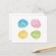 A stylish postcard featuring four watercolour pebbles with the words joy, love, hope and peace. The gently rounded pebbles of blue, pink, yellow and green encase each word written in white lettering. Beautiful and inspirational.