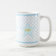 Beautiful mug with stars, light blue polka dots and personalised joy, love, life text.