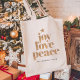 Get ready for the holiday season with this Elegant Minimalist tote bag! It features the words "joy," "love," and "peace" arranged in a tree shape, topped with a golden star. Personalise it with your family name for a special touch, making it a great gift or a festive addition to your holiday shopping. The elegant gold lettering brings warmth and cheer to your everyday outings!