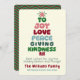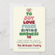Joy Love Peace Giving and Kindness - wonderful sentiments for holiday greetings. Modern puffy lettering in a Tree Shape with a Shining star on top. Vintage Christmas colours include shades of red, green, blue, and pink for a distinctive personalised holiday card. You can personalise the message, the family name and individual names.
