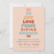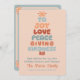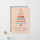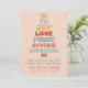 An inspirational word tree: Joy Love Peace Giving and Kindness in a puffy retro font with a Shining star on top. Soft boho colours with retro typography for a distinctive personalised holiday card. Personalise the holiday wishes message, family name, individual names.