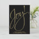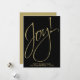 Joy! Minimalist Gold on Black Modern Script Holiday Card