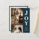 Joy Modern Blue Christmas 3 Photo Collage Holiday Postcard
