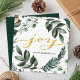 JOY Modern Gold Script Magnolia Floral Pine Bough Holiday Card