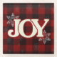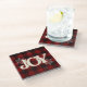 JOY of Christmas Elegant Red buffalo plaid Glass Coaster