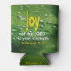 Modern stylish CHRISTIAN SCRIPTURE CAN COOLER showing a greenery background image with the verse based on Nehemiah 8:10, which reads THE JOY OF THE LORD IS YOUR STRENGTH. Underneath there is optional placeholder text which is CUSTOMIZABLE, so you can either personalise it by adding your name and/or message, or simply delete. This would make a great favour giveaway at special Church meetings, conferences or conventions, ministry gifts, stocking fillers at Christmas, for Birthdays and to encourage someone waiting for a breakthrough. Matching items available.