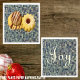 This elegant design, displays a familiar, text word, commonly used in Holiday phrases, in a Digitalised, window-paned, pattern-with a blended mix of taupe, blue, black, grey, and white.