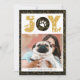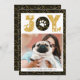 Celebrate the Holiday with this chic, cute and lovely minimalist photo card with your pet featuring the doggie paws " JOY " in seamless gold pine bough pattern in navy blue background. Below photo features your custom greeting message and your names & dog name in modern typography. Happy Holidays and Happy New Year !